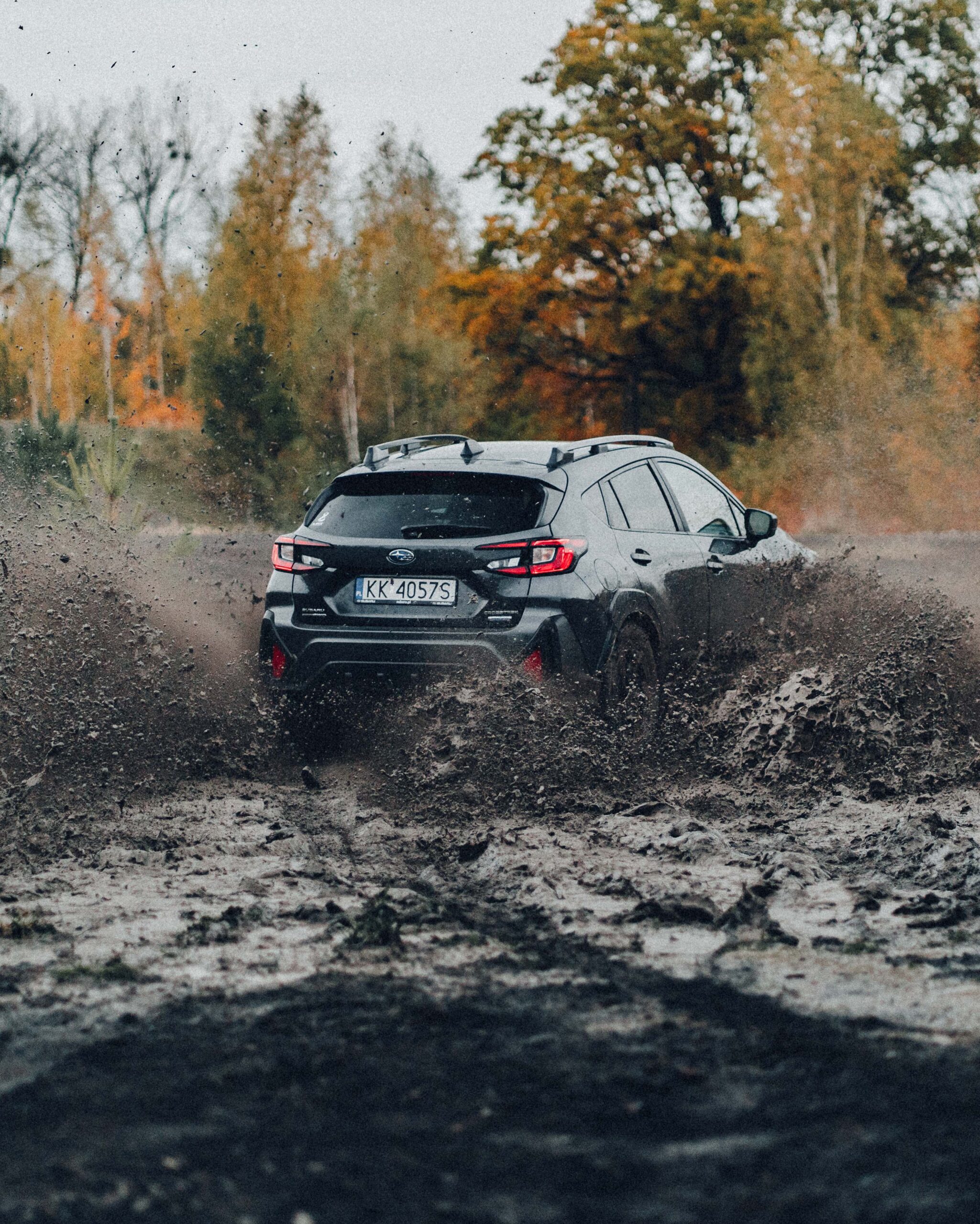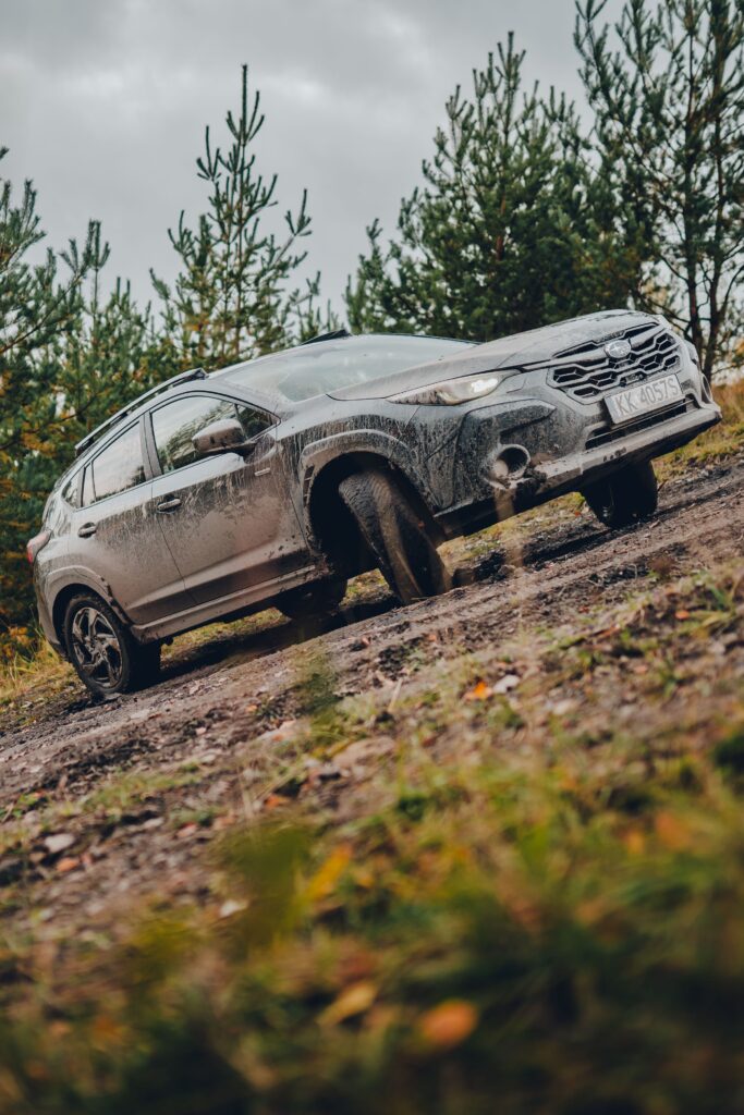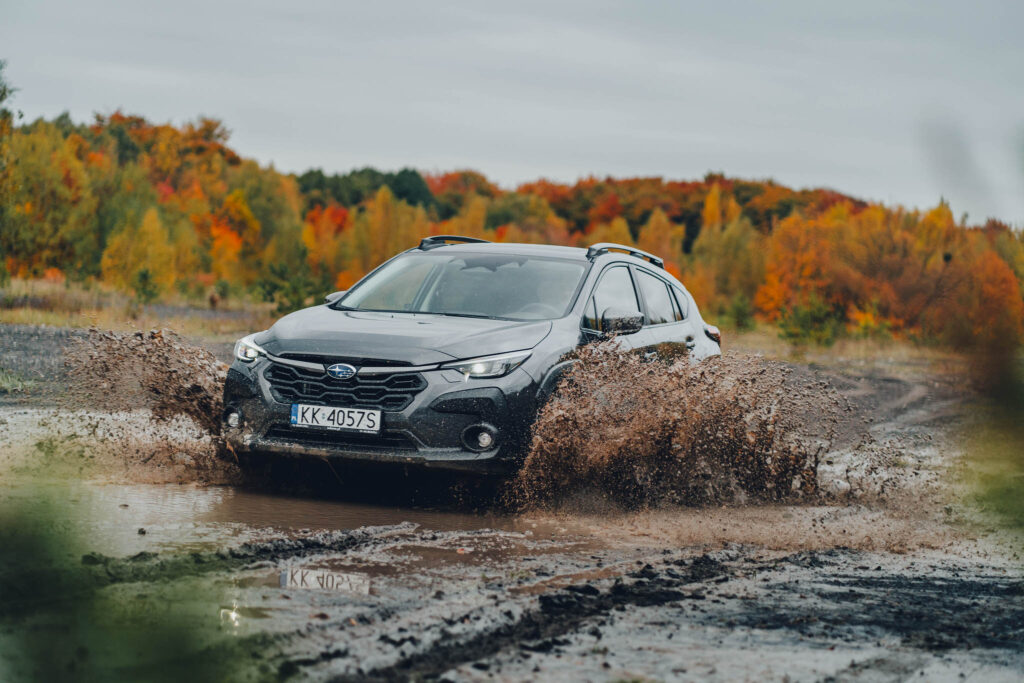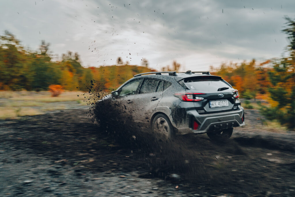 Stały napęd na wszystkie koła S-AWD zachęca kierowcę do tego, aby nie wybierał on najłatwiejszej trasy omijając błoto czy kałuże – a wręcz namawia go do taplania się w błocie. W parze z napędem idzie 22-centymetrowy prześwit nadwozia, czyli coś, czym nie może się poszczycić żaden samochód w tej klasie. Dzięki temu Subaru Crosstrek pokonuje błoto i głębokie kałuże bez stresu – po prostu przejeżdża nad przeszkodami. Do tego dochodzą osłony zderzaków, nadkoli i progów, które zabezpieczają nadwozie przed uszkodzeniami. Warto też pamiętać o akcesoriach, jakie można dokupić w salonie, przykładowo: terenowe opony typu AT czy metalowe osłony silnika i dyferencjału.