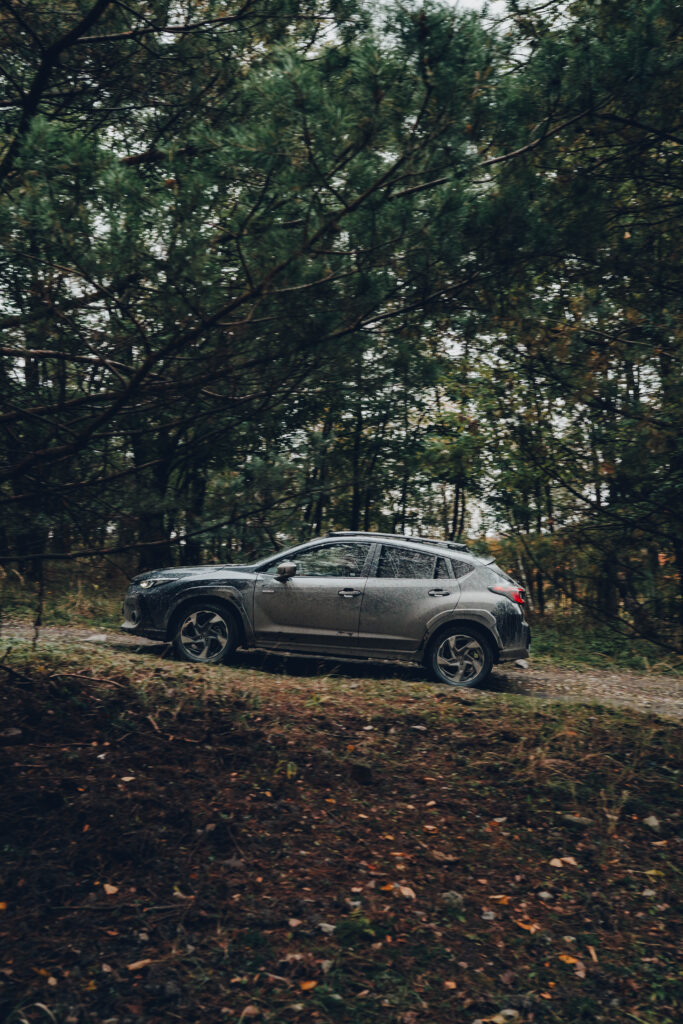 Większość samochodów terenowych to duże pojazdy. O ile w przypadku aut wyczynowych nie stanowi to większego problemu, tak jadąc sporym samochodem drogowym przez bezdroża co rusz martwimy się o stan felg czy lakieru, ocierających się o korzenie, gałęzie czy kamienie. Kompaktowy rozmiar – to kolejna rzecz wyróżniająca Subaru Crosstreka. Można powiedzieć, że to taka kieszonkowa terenówka, która wjedzie niemal wszędzie i wciśnie się tam, gdzie kierowcy dużych aut terenowych i SUV-ów nie będą mieli odwagi. Idealny przykład to wąska leśna droga, pełna przeszkód czyhających, aby zarysować lakier naszego auta. Crosstrek jednak pozwala sprytnie lawirować między kamieniami czy gałęziami i bez strat jedzie przed siebie.
